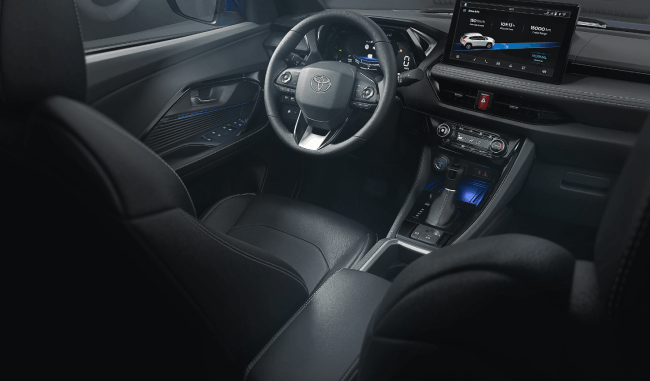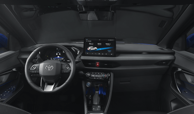 Ar-condicionado digital automático, carregador de celular sem fio por indução, central multimídia de 10" com conexão Android Auto® e Apple CarPlay®. Camera de estacionamento 360, Painel digital de 7", volante com controles de áudio e funções TSS⁴ (Toyota Safety Sense).