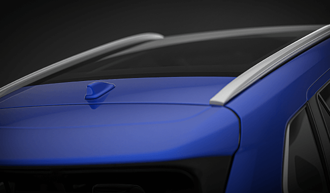 18" de liga leve com acabamento na cor preta, acabamento interno com partes revestidas de couro e material sintético preto, teto panorâmico fixo em vidro, com cortina de fechamento elétrico equipada com sistema antiesmagamento, faróis de LED e retrovisor externo com rebatimento automático, pintado na cor da carroceria, com luz indicadora de direção em LED integrada.